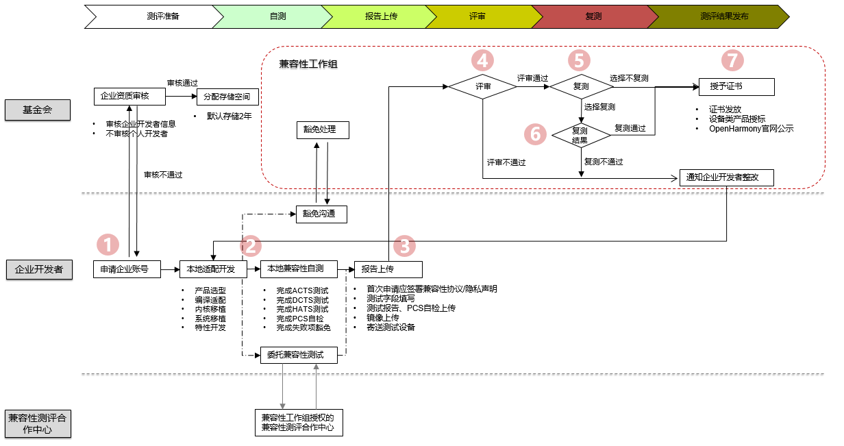**步骤 6** OpenHarmony兼容性工作组对申请方复测报告进行评审,若复测评审通过,则本次OpenHarmony兼容性测评通过;若复测评审不通过,OpenHarmony兼容性工作组将通知申请方整改。
